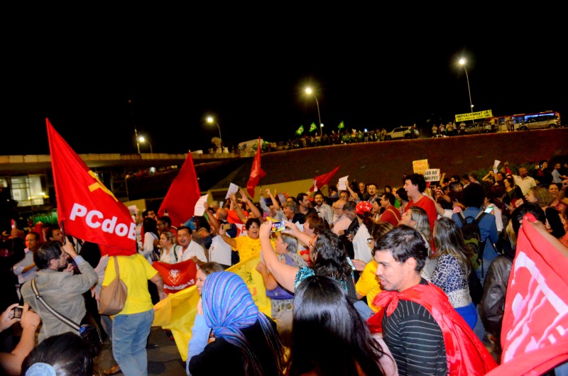 A decisão do presidente do Senado, Renan Calheiros, em desconsiderar a anulação da seção que admitiu o impedimento da presidenta Dilma e dar continuidade ao processo de impeachment no Senado, levou cerca de 500 manifestantes à entrada principal do Senado para protestar contra a decisão de Renan.