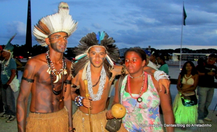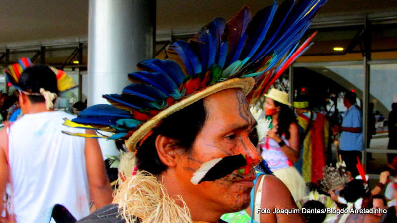 Índios de cerca de 105 etnias ocupam, na manhã desta quarta-feira (16), as cúpulas da Câmara e do Senado, no prédio do Congresso Nacional.