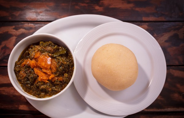 Okro soup e fufu, pratos servidos no restaurante africano no DF,