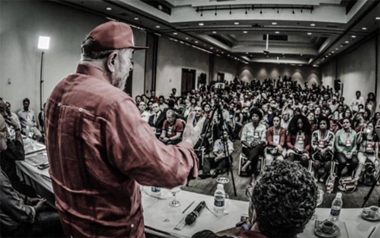 O jornalista Mino Carta, diretor da revista CartaCapital, fez um discurso ao mesmo tempo erudito e objetivo. “A Lava Jato é a primeira alavanca do golpe”, disse, parafraseando o pensador Arquimedes (287 a.C.-212 a.C.). Segundo o jornalista, o país atravessa “um momento de Idade Média” e Sérgio Moro é um “narcisista obcecado”. Por isso, a fixação em perseguir Lula. “A prisão ou condenação do Lula vai ter repercussão mundial, vai-se falar de Moro.” Para ele, “o que foi destruído pela Lava Jato até o momento é o próprio país. No caminho, o objetivo era destruir o PT e o próprio Lula”.