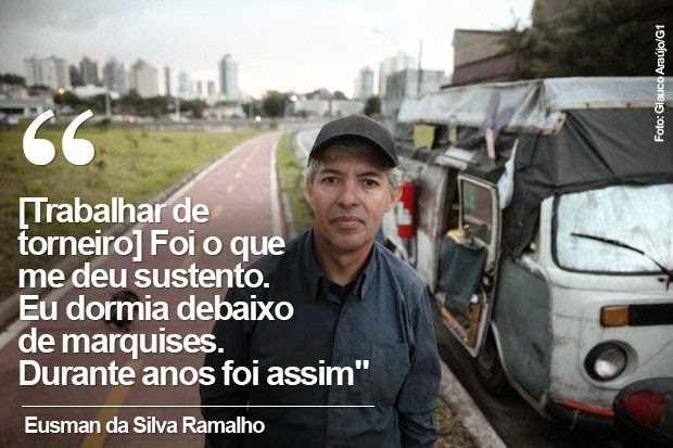 Eusman da Silva Ramalho, 54 anos, conhecido como Osmar, se aventura por diversos ramos: é torneiro mecânico, vigilante, manobrista e conhecimentos em direito. Com tantas possibilidades profissionais para nortear seu futuro, um problema no casamento com graves consequências o levou a morar na rua, há anos. Deixou de lado a mulher e duas filhas já adultas em São Bernardo do Campo, no ABC paulista e hoje vive em uma Kombi.
