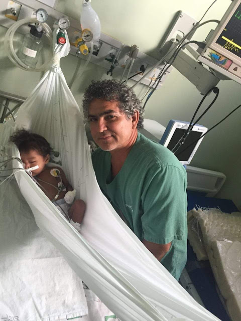 "Na UTI pediátrica do Hospital de Clínicas Gaspar Vianna em Belém (PA) um bebê indígena só parou de chorar quando foi colocado em uma rede de lençol improvisada por um Técnico em Enfermagem (Fábio Marques Ferreira), mostrando, além da importância da humanização no cuidado em Saúde, a importância do respeito aos costumes de um povo que está sendo massacrado."