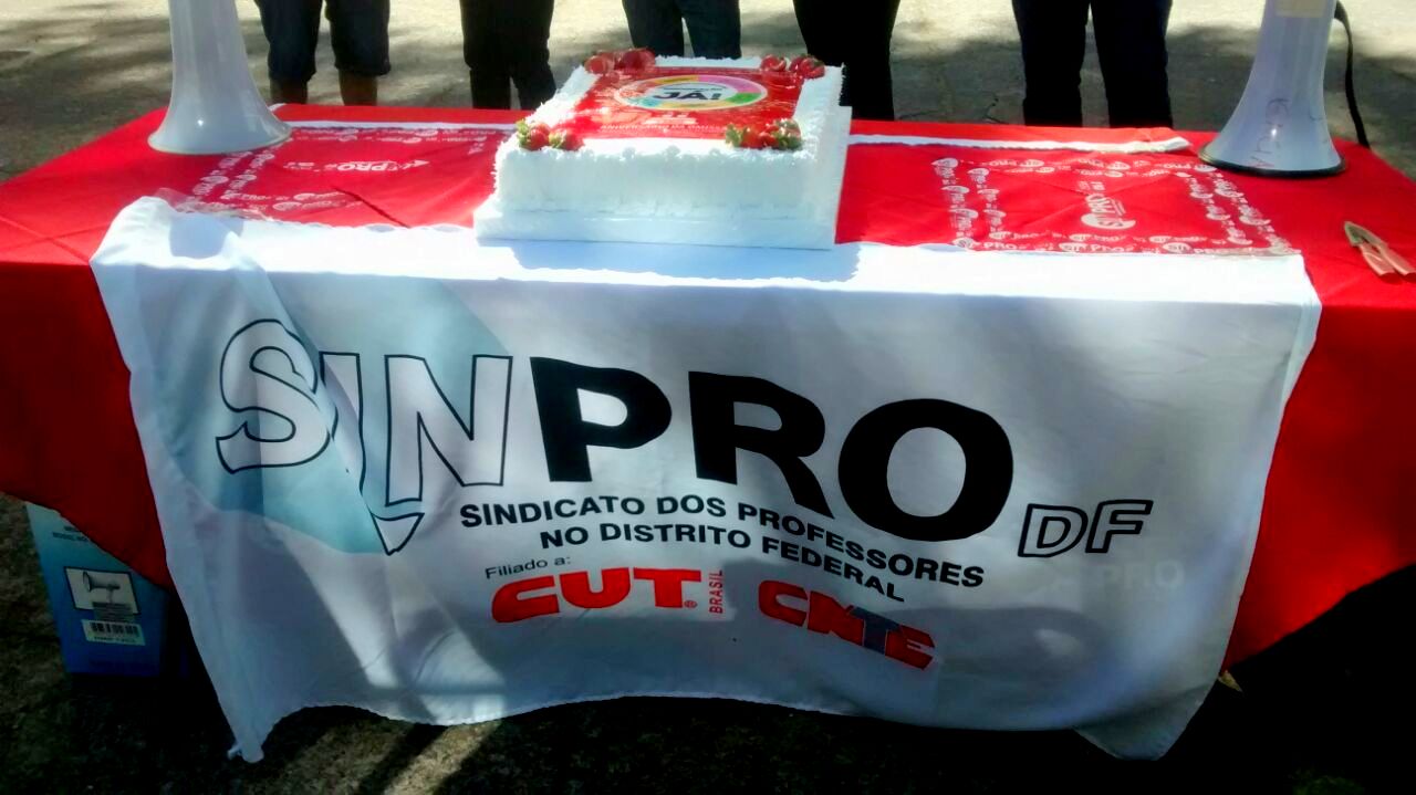 O Ato terminou com um escracho ao secretário de Educação. Foi cantado "parabéns pra você" e um bolo foi servido aos participantes.