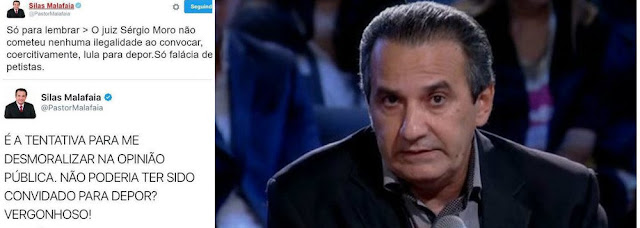 Alvo da Operação Timóteo, que investiga fraudes em royalties de mineração, e tem o líder evangélico como suspeito de ter "emprestado" contas da igreja para receber dinheiro do esquema, Malafaia foi levado forçadamente para depor e soltou o verbo em sua conta no Twitter.