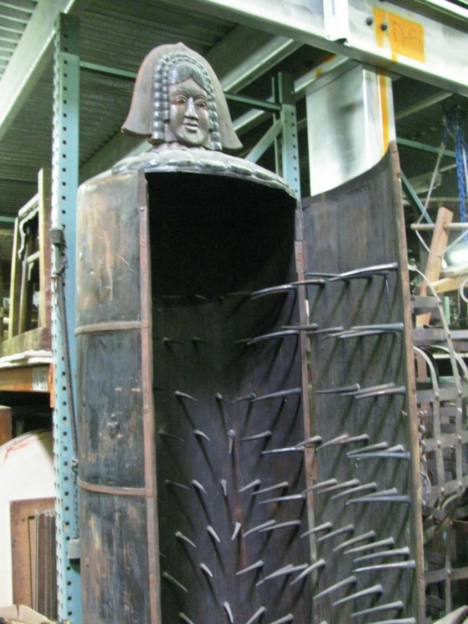 A Dama de Ferro (Iron Maiden) é uma espécie de sarcófago com espinhos metálicos na face interna das portas. Estes espinhos não atingiam os órgãos vitais da vítima, com a intenção de atrasar a morte e prolongar o sofrimento da vítima, que ficava ferida gravemente. As regiões que costumavam ser perfuradas era os olhos, os braços, pernas, barriga, peito e nádegas. As vítimas eram deixadas lá dentro por vários dias, até que finalmente chegassem a morte.