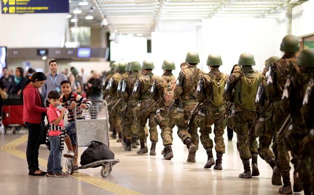 Luglio 22, 2016 20:26| EXÉRCITO FAZ FILA EM SAGUÃO DO AEROPORTO TOM JOBIM, NO RIO DE JANEIRO FOTO: UESLEI MARCELINO/REUTERS |