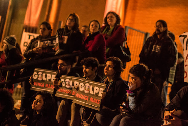 A mídia golpista é considerada um risco a democracia brasileira pelo apoio à ditadura militar de 1964 e por estimular o golpe contra um governo popular eleito democraticamente pela maioria dos eleitores brasileiros.