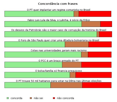 Abaixo, resultado parcial de pesquisa feita durante manifestações de opositores ao governo Dilma na Avenida Paulista: