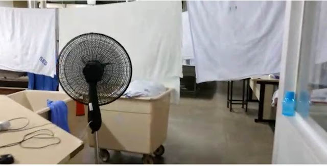 Servidores usam ventilador para secar roupas no hospital de Taguatinga