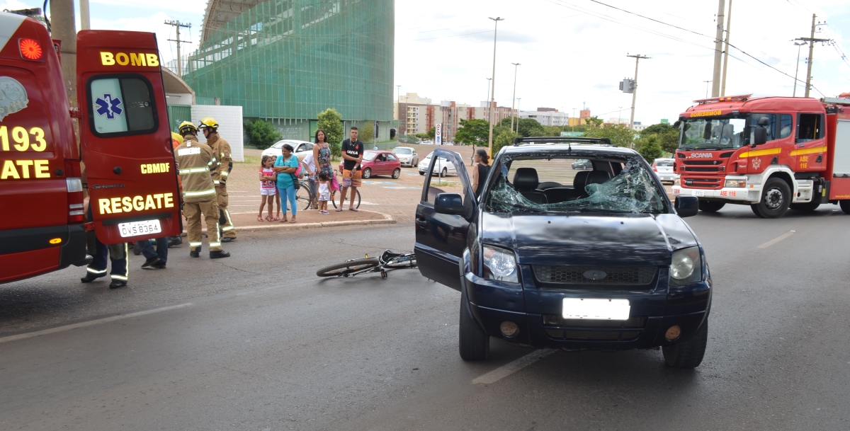 Cada vez mais ocorrem acidentes envolvendo automóveis e ciclistas no DF e, em uma rápida pesquisa, constatamos que os campeões na estatística da polícia são o consumo de álcool e o manuseio de aparelho celular ao volante, entretanto, não podemos afirmar que tenha sido um desees dois os causadores do acidente de hoje.