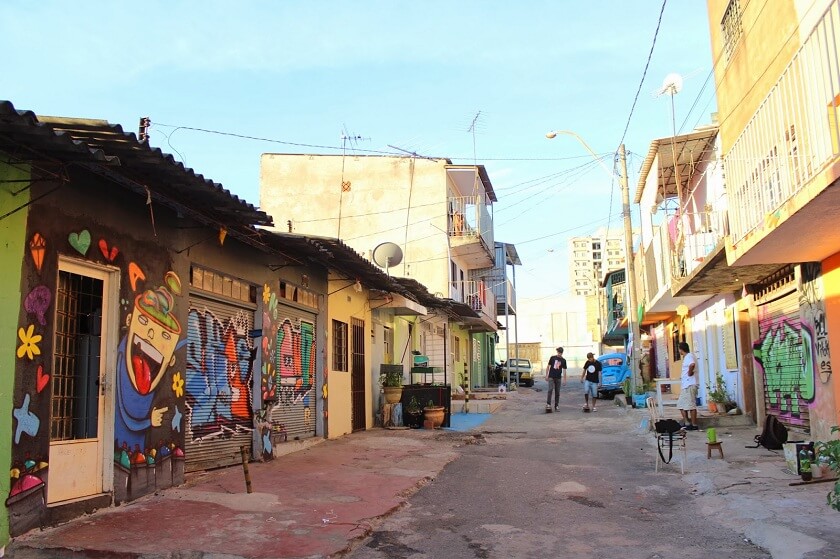 O ambiente conturbado da Avenida Samdu Sul e adjacências, em Taguatinga, saturado por comércios e poluição visual, ganha tons diferentes na altura da QSB 12/13. Naquela área, duas vielas chamam a atenção pelo colorido das fachadas dos prédios e das casas. Conhecido como Espaço Cultural Mercado Sul ou Beco da Cultura, o trecho urbano é hoje um ponto de convergência de artistas que ali fixaram residência e trabalham. Uma espécie de comunidade onde o cotidiano é regido pela criatividade.