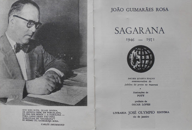Exigiu você que eu escrevesse, manu propria, nos espaços brancos deste seu exemplar de Sagarana, uma explicação, uma confissão, uma conversa, a mais extensa, possível — o imposto João Condé para escritores, enfim. Ora, nem o assunto é simples, nem sei eu bem o que contar. Mirrado pé de couve, seja, o livro fica sendo, no chão do seu autor, uma árvore velha, capaz de transviá-lo e de o fazer andar errado, se tenta alcançar-lhe os fios extremos, no labirinto das raízes. Graças a Deus, tudo é mistério.