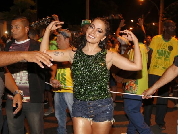 "Incrível, uma sensação maravilhosa, a energia da bateria, as pessoas em volta... o ensaio de rua já mostra bastante como vai ser no dia do desfile. Estou amando". Em 2015, Anitta teve contato mais íntimo com o carnaval quando puxou um bloco no primeiro dia da folia em Salvador, na Bahia.