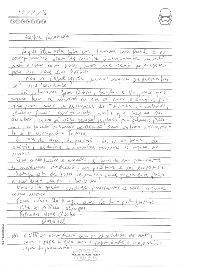 Fiquei feliz pela foto em Havana com Raul e os companheiros, além da Mônica, unicamente senti não estar com vocês, mas me senti representado por você e o Breno.