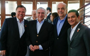 | Blairo Maggi, Michel Temer, Serra e Marcos Pereira: prisão de Cunha antecipa retorno de viagem a Índia e Japão Foto BETO BARATA/PR |