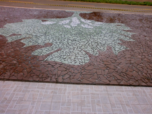 | Piso frontal do espaço, mosaico feito por Valdeci e sua equipe. A árvore é o símbolo da Cia de Teatro Semente Foto Joaquim Dantas |