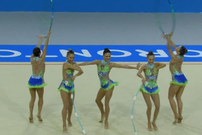 O time brasileiro de ginástica rítmica ficou com a medalha de ouro na prova geral por equipes. Dayane Amaral, Morgana Gmach, Emanuelle Lima, Jessica Meier e Ana Paula Ribeiro foram melhores em todas as rotinas. A equipe norte-americana ficou com a prata e as cubanas com o bronze.