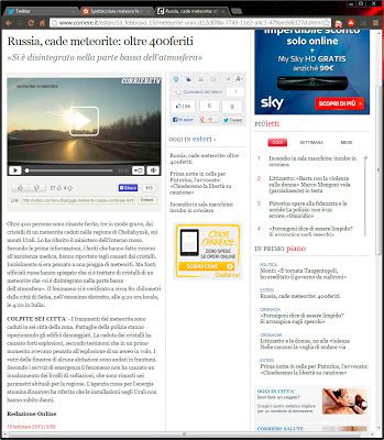 Anche il Corriere non era da meno, scrivendo la stessa cretinata dei “cristalli di un meteorite” che avrebbero ferito le persone, poi ha corretto (infilando altri strafalcioni d'italiano che taccio per pietà e per non fare gratis il lavoro che spetterebbe alle redazioni), ma zzzale ha catturato la schermata e me l'ha inviata: