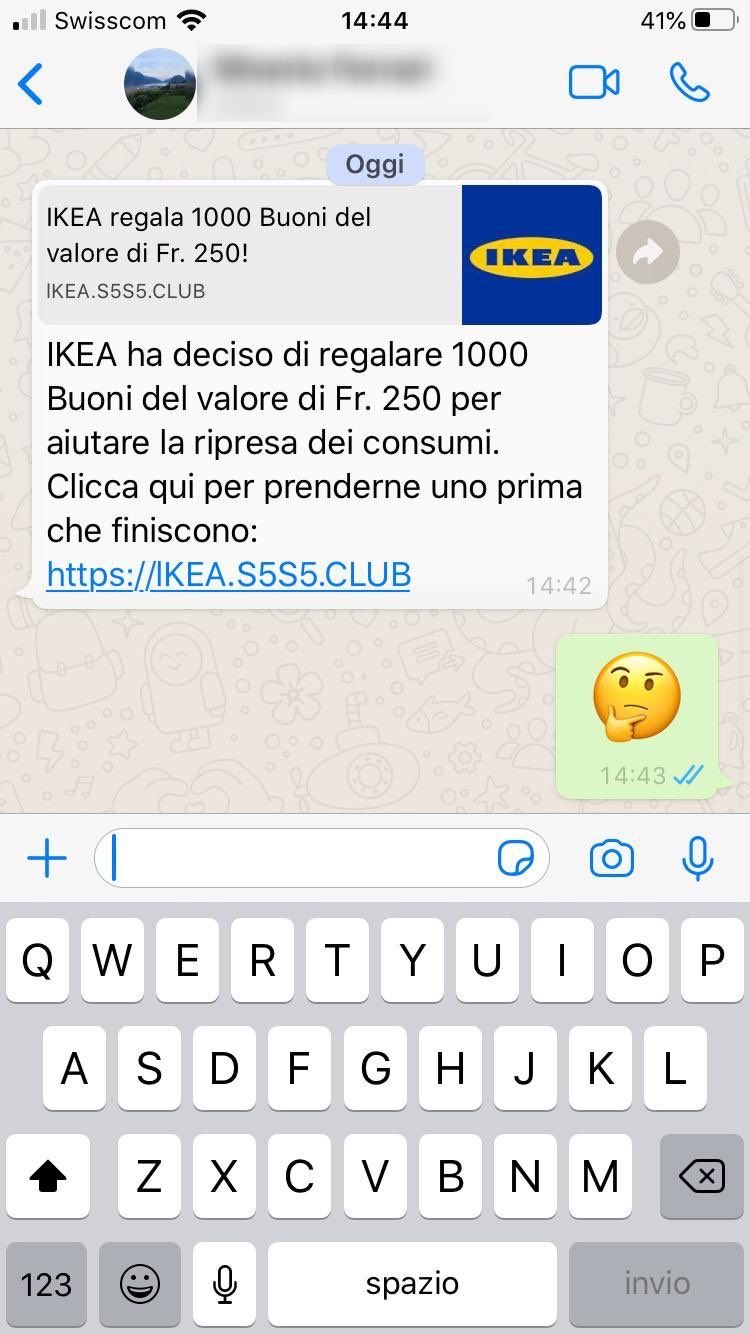 Mi stanno arrivando moltissime segnalazioni di un’apparente offerta di “1000 buoni del valore di Fr. 250” che porta il marchio Ikea. È una truffa: non cliccate sul link e non inoltratelo a nessuno. Tio.ch ha già pubblicato un avviso in proposito.