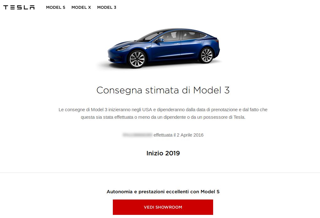 L’annuncio parla solo di “essere tra i primi a sedersi” a bordo dell’auto se ci si presenta con il proprio numero di prenotazione. Presumo intendano la prenotazione per l’acquisto di una Model 3, come quella che ho fatto ad aprile 2016.