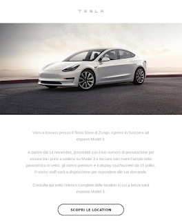 Maggiori info sono presso Tesla.com e Vaielettrico.it: in Italia è annunciata Milano, mentre in Svizzera sono indicate Zurigo, Losanna e Ginevra. Gli altri stati europei coinvolti nella presentazione sono Germania, Norvegia, Belgio, Francia, Spagna, Svezia, Portogallo e Austria. L’auto è già in vendita e in circolazione da circa un anno negli Stati Uniti e in Canada.