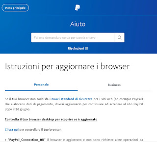 Se avete ricevuto una mail che sembra provenire da PayPal e vi avvisa che il browser che state usando “non è compatibile con i nostri standard di sicurezza e non sarà più supportato”, niente paura: stavolta non è un tentativo di truffa, e il link incluso nel messaggio porta davvero a una pagina di aiuto di PayPal e non a qualche sito di malfattori.
