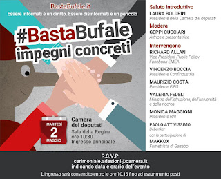 May 1, 2017 4:12Domattina dalle 10:30 ci sarà una diretta Web da Montecitorio nell'ambito del progetto #Bastabufale della Presidenza della Camera dei Deputati italiana, dove verranno presentati e discussi i risultati degli incontri precedenti per arrivare a impegni concreti nel contrasto alle varie forme di manipolazione dell'informazione. Io sarò presente per un intervento introduttivo. Questa è la descrizione dell'incontro tratta dal sito della Camera:“#Bastabufale. Impegni concreti” – Martedì alle 10,30 diretta webtv