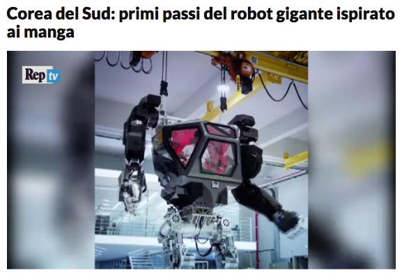 Repubblica ha pubblicato un articolo su un robot gigante, “alto quattro metri”, chiamato Method, che sarebbe da lanciare sul mercato “entro il 2017 ad un prezzo di 7,9 milioni di euro”. Sarebbe stato realizzato in Corea del Sud da Yang Jin-Hom, “presidente della Hankook Mirae Technology”.