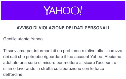 – prima di tutto, cambiate password su Yahoo e usatene una lunga e complessa oltre che diversa da quelle usate altrove;