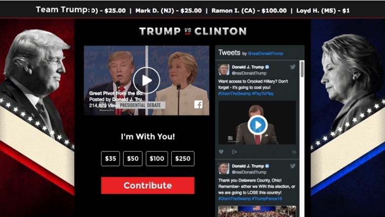 Anche il candidato repubblicano alla presidenza, Donald Trump, ha qualche problema con l’informatica. Sul suo sito elettorale, DonaldJTrump.com, fino a ieri c’era un contatore a scorrimento (in alto nell’immagine qui accanto) che sembrava essere un elenco in tempo reale dei nuovi donatori e sostenitori della sua campagna elettorale.