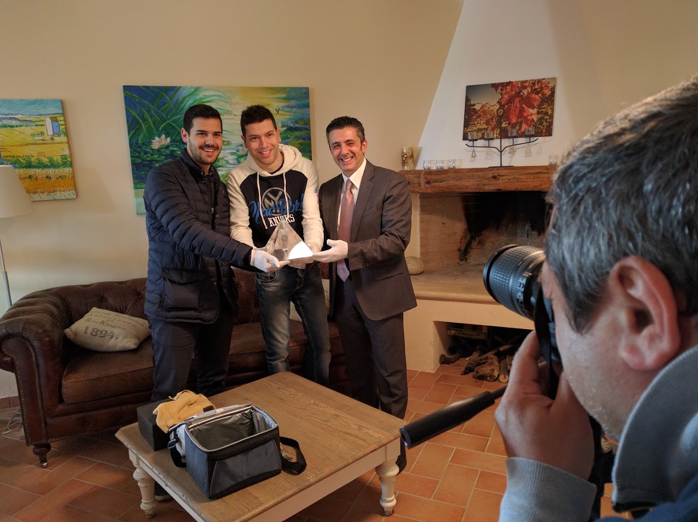| Valerio Galiffa, Biagio Cimini e Antonio Moretti si godono il meritato momento con la Luna tra le mani. |