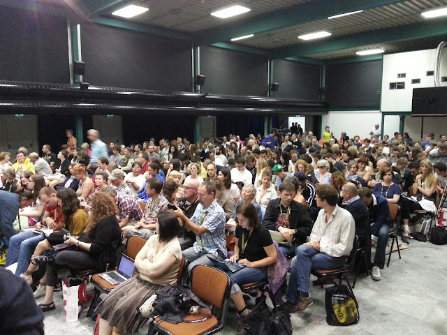 Ho appena passato un'ora abbondante ad ascoltare dal vivo Sir Christopher Lee al Festival del Cinema di Locarno. Sala strapiena, non si sentiva volare una mosca. Tutti in silenzio ad ascoltare, rapiti, la voce di un novantunenne dalla tempra straordinaria che racconta passioni, aneddoti e dettagli di una vita di cinema, con momenti surreali (sentire la voce di Saruman imitare Gatto Silvestro non ha prezzo) e commoventi (il suo ricordo di Peter Cushing – al quale faceva sempre quest'imitazione – gli fa venire i lucciconi, come nella foto qui sopra) e soprattutto con una presenza e una vitalità che sembrano davvero magia.