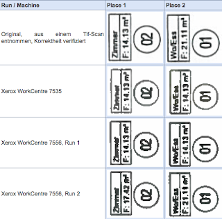 August 9, 2013 16:25 - no comments yet La Ribellione delle Macchine è cominciata. Le fotocopiatrici non sono più schiave diligenti che ricopiano fedelmente quello che viene dato loro da duplicare. Da tempo, silenziosamente, pazientemente, hanno iniziato ad alterare subdolamente le fotocopie, scambiandone numeri qua e là, senza dare nell'occhio.È la scoperta di un informatico tedesco: si è accorto che le copie prodotte da alcune fotocopiatrici della Xerox (e, si sospetta, anche di altre marche), se settate sulla modalità definita “normale”, cambiavano i numeri nei disegni tecnici, come nell'esempio qui accanto.