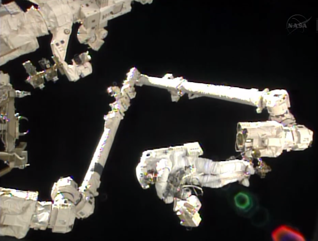 Verranno assistiti, dall'interno della Stazione, da Karen Nyberg, che trasporterà Luca agganciandolo con il grande braccio robotico esterno. Vai Luca!