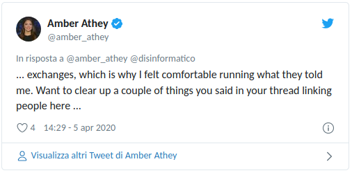 A parte questo, salvo omonimie Amber Athey è il tipo di persona che twitta antisemitismi come questi: https://t.co/XBFJaxNmQA pic.twitter.com/6q7vtevEra— Paolo Attivissimo (@disinformatico) April 5, 2020