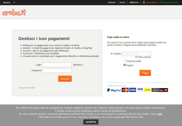 Non avendo una login Aruba o un numero d’ordine, non avrei potuto proseguire neanche se avessi voluto. E a questo punto non volevo assolutamente proseguire, ovviamente.