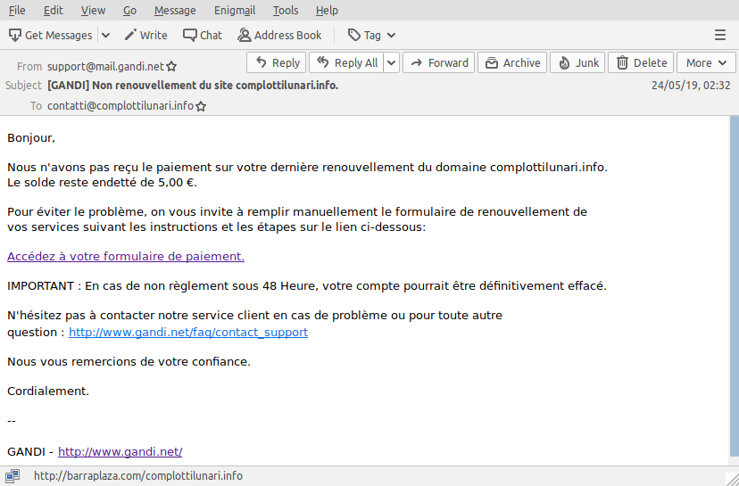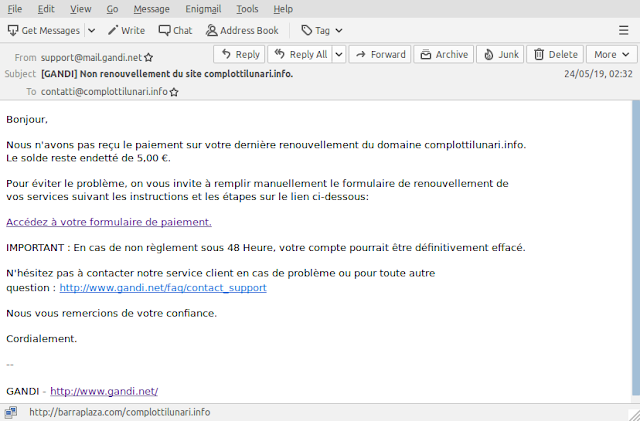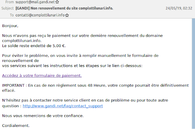 Subject: [GANDI] Non renouvellement du site complottilunari.info.