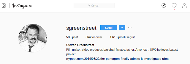 Infatti l’autore dell’articolo del New York Post, Steven Greenstreet, non è un giornalista qualsiasi che racconta un fatto di cronaca. È anche lui un ufologo convinto, come dichiara nel suo profilo Instagram: