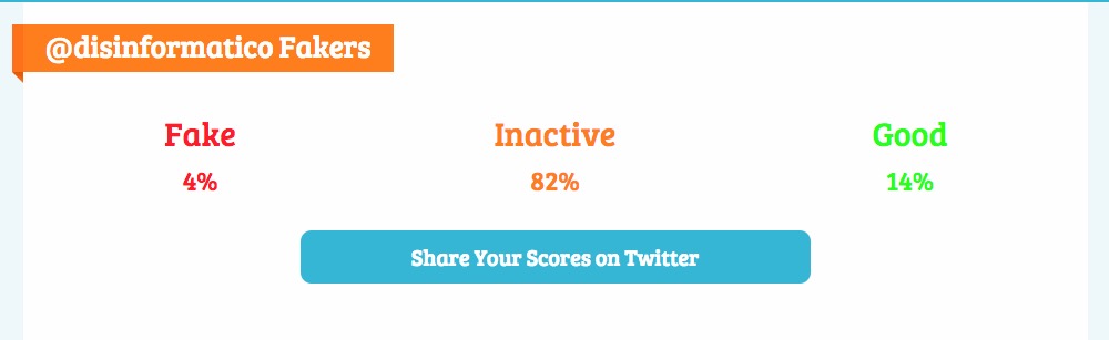 January 6, 2017 11:08Nei giorni scorsi ho fatto pulizia dei fake (o presunti fake) del mio account Twitter: ne avevo parlato qui e qui, spiegando criteri e tecniche. Ora i fake sono, secondo Statuspeople.com, circa il 4%: una percentuale fisiologica e accettabile (TwitterAudit al momento sta avendo problemi e non aggiorna il proprio conteggio).