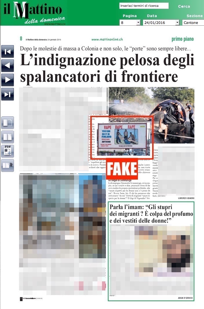 Il Mattino pubblica la falsa foto del poster “stupro libero per rifugiati”