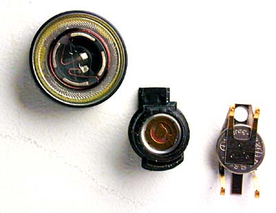 Alcuni telefonini, infatti, contengono una seconda batteria seminascosta, molto più piccola di quella principale, che serve per alimentare l'orologio interno (il chip di clock, in gergo). In teoria, questa batteria (mostrata a destra nella foto qui accanto insieme ad un altoparlante e a un microfono di cellulare), oppure un condensatore, può alimentare non solo l'orologio, ma anche altri circuiti del telefonino, almeno per brevi periodi.