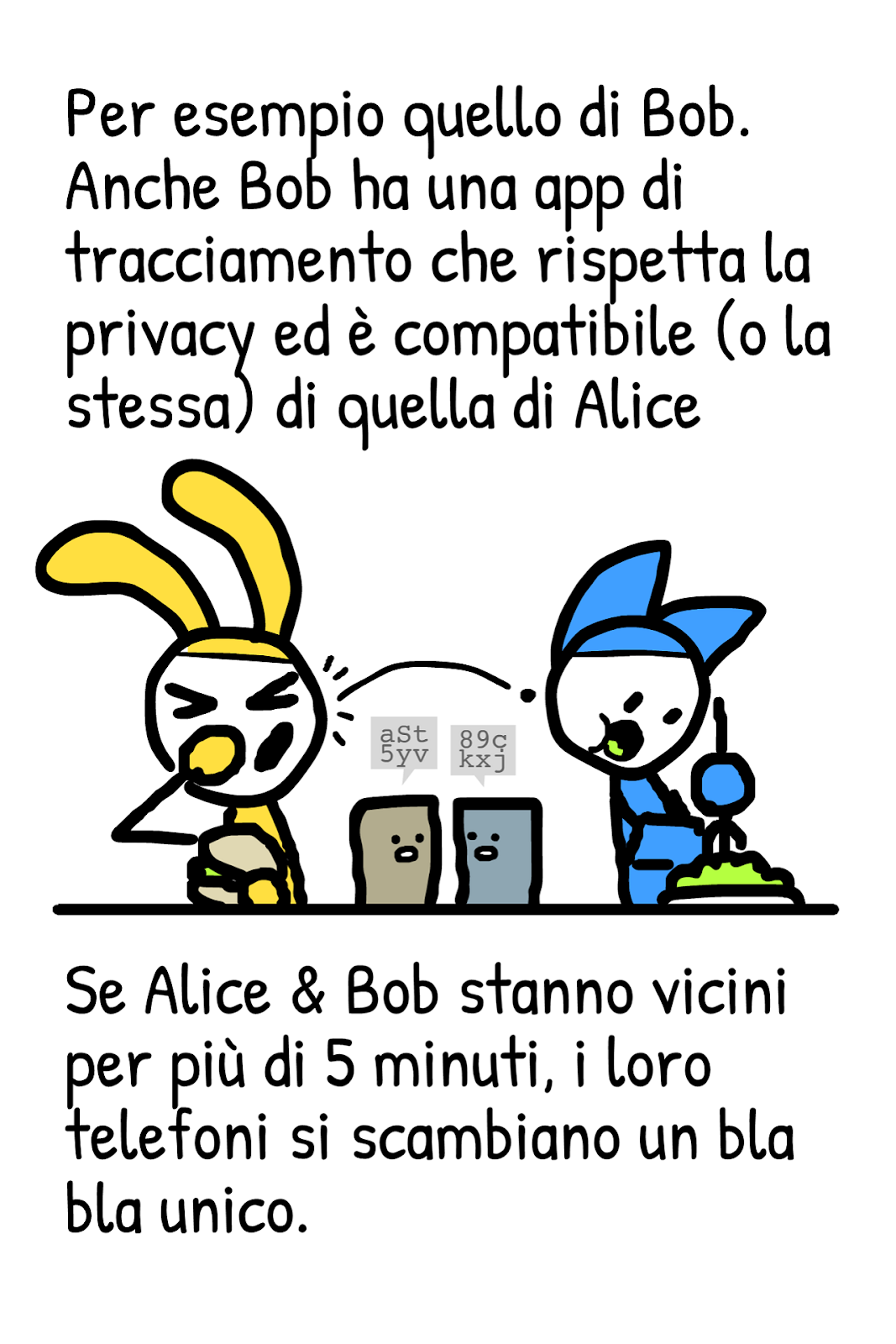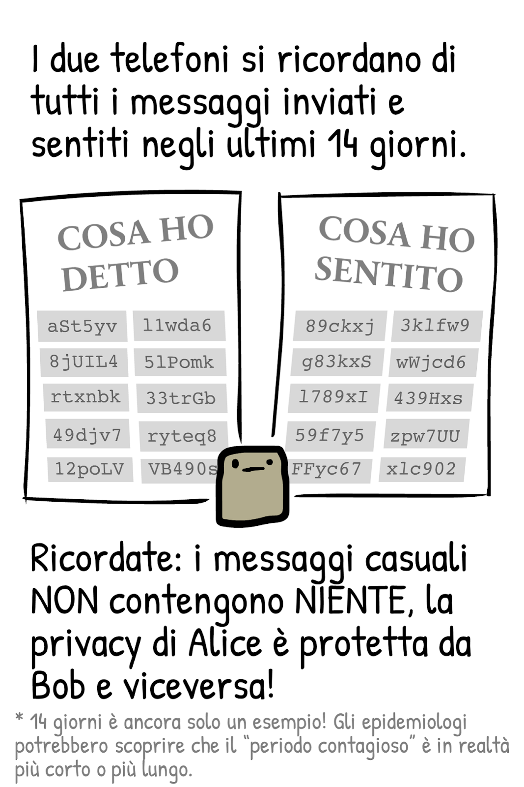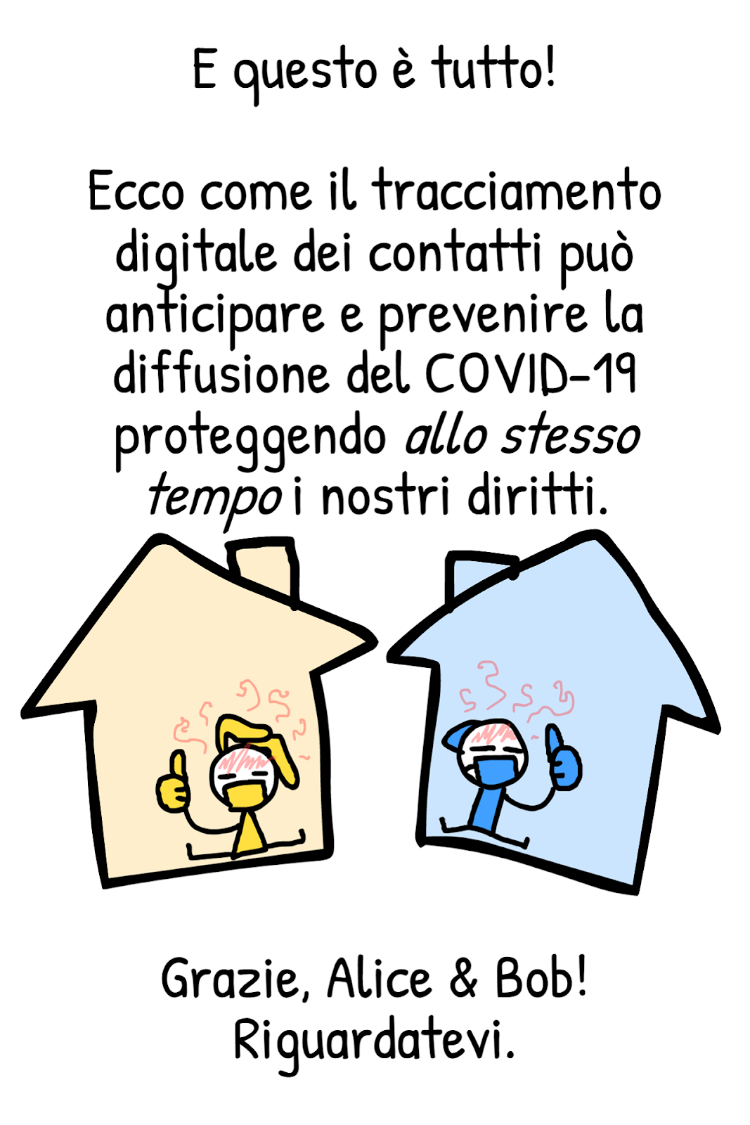 April 24, 2020 15:23La documentazione pubblica dell’app di tracciamento svizzera include questo fumetto di Nicky Case, disponibile in varie lingue, che spiega i princìpi di funzionamento delle app di contact tracing. I concetti espressi qui valgono per qualunque app che usi il sistema DP-3T (come fa quella italiana).