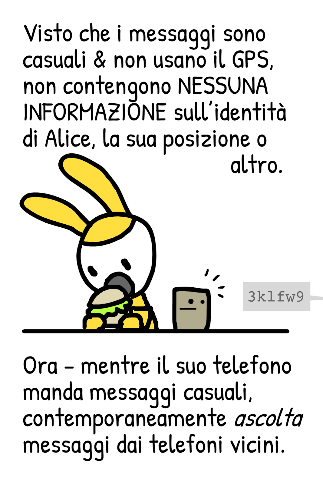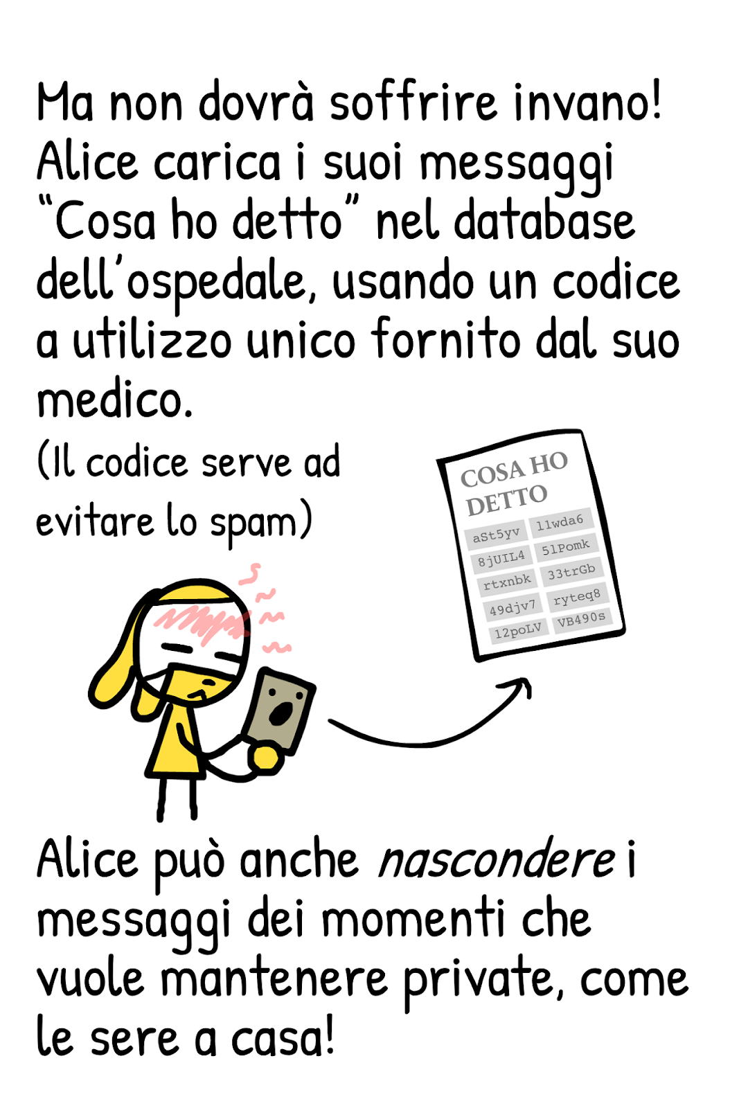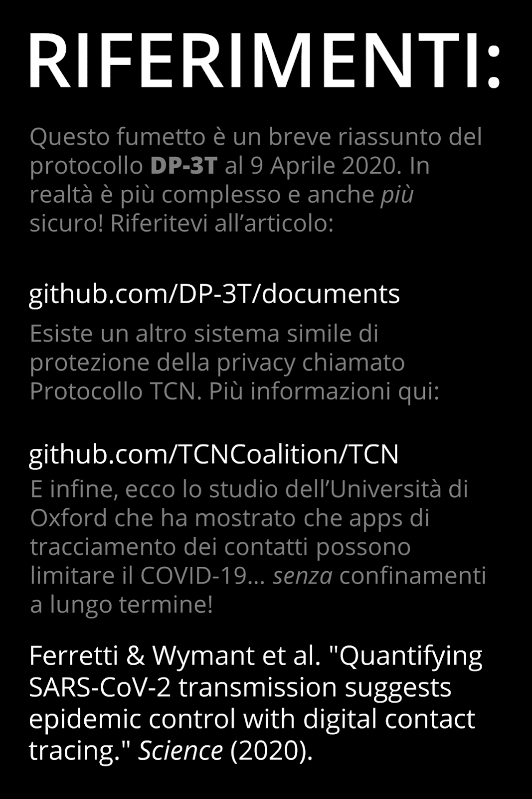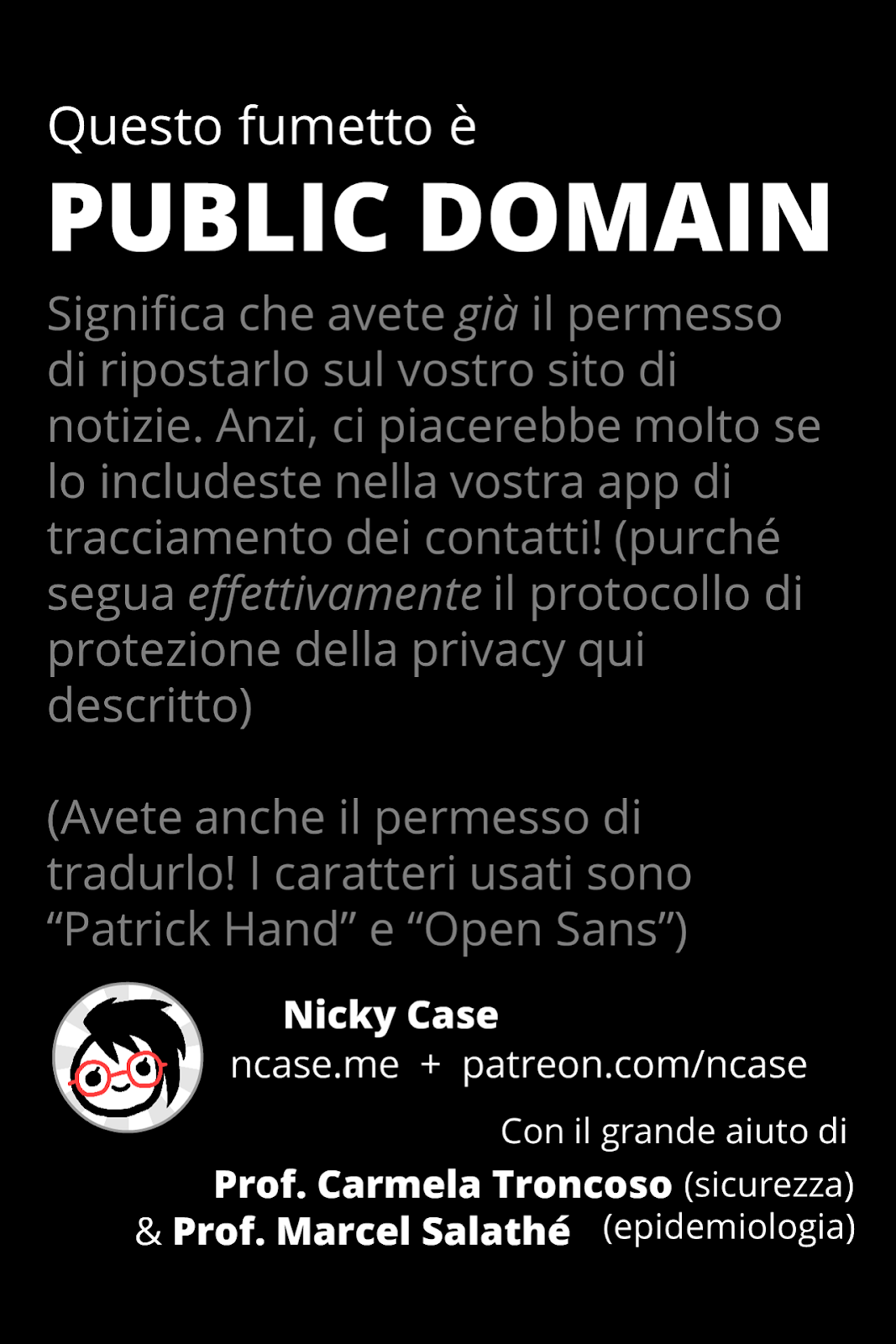 April 24, 2020 15:23La documentazione pubblica dell’app di tracciamento svizzera include questo fumetto di Nicky Case, disponibile in varie lingue, che spiega i princìpi di funzionamento delle app di contact tracing. I concetti espressi qui valgono per qualunque app che usi il sistema DP-3T (come fa quella italiana).