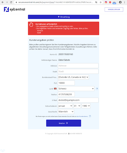 Non posso dire nulla sulla reputazione di Excentral-int.com, dove sono arrivato, ma per il modo in cui ci sono arrivato non immetterei qui nemmeno la carta di credito scaduta di uno sciachimista torturatore di pangolini: