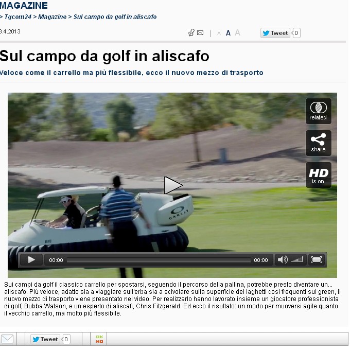 Va notato che, come molto del giornalismo spazzatura, la notizia dell'hovercraft da golf è copiata pari pari dal Daily Mail britannico. Ovviamente senza citare la fonte.