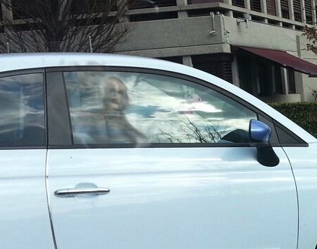 Guardate il riflesso nel finestrino dell'auto.