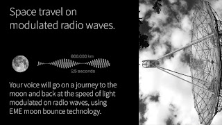 July 5, 2019 6:09Mentre ero al festival della comunicazione scientifica Starmus, a Zurigo, ho fatto un Moonbounce: la mia voce è stata mandata in tempo reale via Internet al radiotelescopio di Dwingeloo, nei Paesi Bassi, e da lì è stata trasmessa via radio verso la Luna.Viaggiando alla velocità della luce, il segnale radio ha raggiunto la Luna circa un secondo e un quarto più tardi ed è stata riflessa dalla superficie lunare, tornando indietro verso la Terra un altro secondo e un quarto più tardi, ed è stata ricevuta dal radiotelescopio. Questo è il risultato: