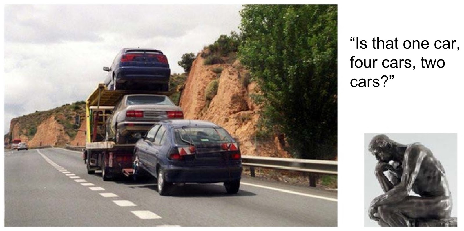 Anche la categoria “automobili” pare abbastanza ovvia da riconoscere, poi capita un caso come questo: quante auto sono? Una sola, due, quattro?