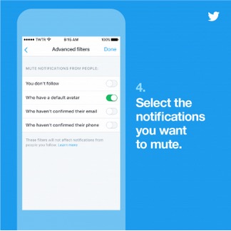 È inoltre in arrivo una nuova serie di filtri avanzati: li trovate (o li troverete, a seconda di dove siete nel mondo) in Notifiche - Impostazioni (icona dell’ingranaggio) subito dopo la voce Parole silenziate. Questi filtri avanzati consentono di silenziare gli utenti che hanno ancora l’uovo come immagine predefinita, che non hanno confermato un indirizzo di mail e/o un numero di telefonino da associare al proprio account: tutti segni quasi certi che si tratta di account automatizzati di spammer e scocciatori.