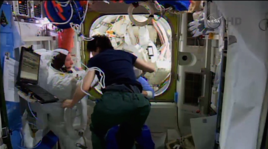 Al momento del rientro a bordo, sempre gestito da Sam, c'è stata anche un po' di concitazione perché nel casco di Terry Virts si stava accumulando dell'acqua, come era accaduto nel 2013 a Luca Parmitano, anche se in misura molto minore.